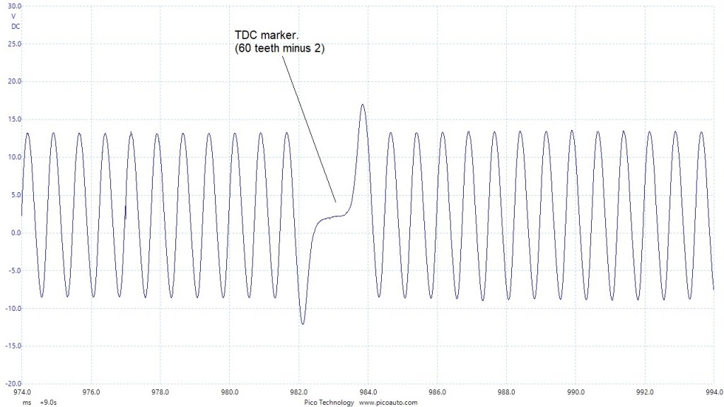 This final image just illustrates the full revolution of the crankshaft, so that you can see the 60 teeth minus 2 teeth.