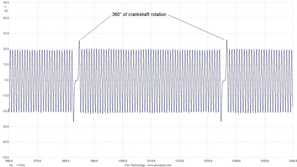 Inductive engine speed or crankshaft sensors have been around for a long time and they don’t all look like the signal I have shown. So, as with most scope analysis, always look for repeating patterns.