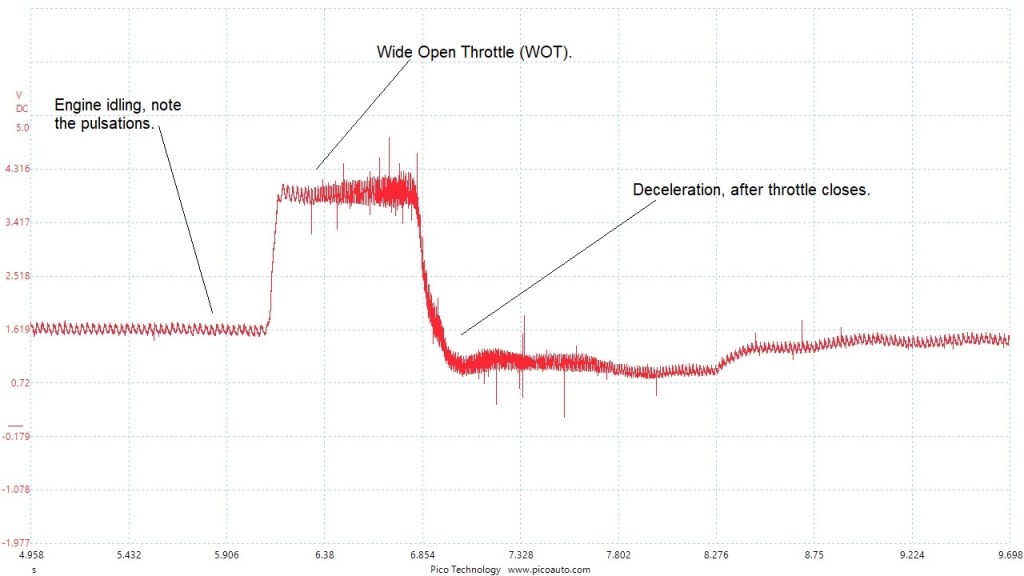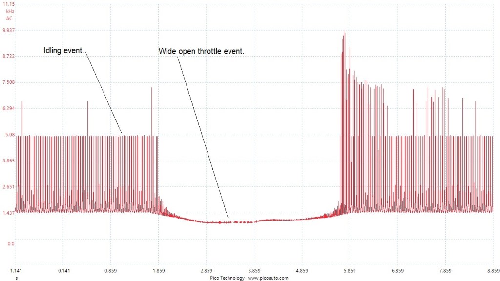 This capture was taken whilst idling, followed by a wide open throttle event or snap throttle.