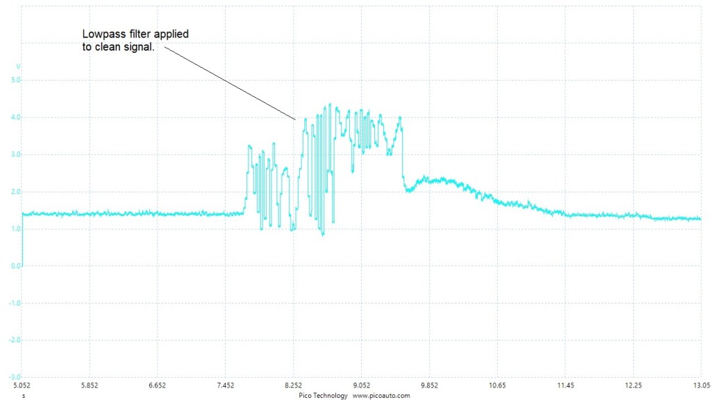 This image shows the same engine MAF signal, with a new good quality sensor fitted to it.
